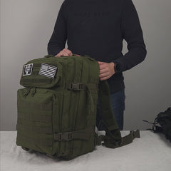 De backpack is gemaakt van 900D Oxford Polyester, met verstevigde naden en sterke ritsen. Ontworpen voor jarenlang intensief gebruik.